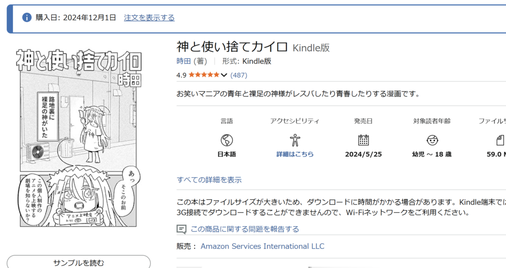 この話はねーオモシロかったね。よかった。Unlimitedに加入していれば無料で読めるのに、わざわざ買った。(無料の本も普通に購入することもできる。)